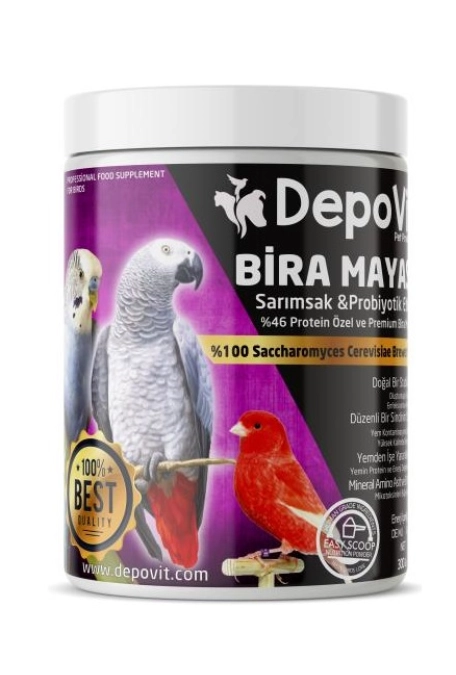 Egzotik kuş serisi için özel olarak hazırlanan Depovit bira mayası tozu kanatlılar için benzersiz bir koruyucu, geliştirici ve performans sağlayıcı bir üründür.İçerisindeki Mineraller, Asitler ve Vitaminler sayesinde kuşlarımızı hastalıklara karşı korur, yavru kuşların gelişiminde ve dirençlerinde maksimum destek sağlar. Depovit Bira Mayası içerisinde eklediğimiz probiyotik ve enzimler sayesinde artık çok daha güçlü bir sindirim sistemi ve bağışıklık güçlendiricidir. İçerinde bulunan sarımsağın etkisiyle etkisini kat ve kat arttıran Depovit bira mayası tozu sarımsak sayesinde de bir çok hastalığa önlem ve direnç kazandırmakla beraber kuşlarımızın strese dayalı bütün problemlerini ortadan kaldırmaktadır.