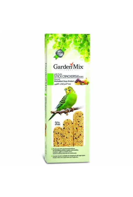 Gardenmix Meyve Aromalı Kraker, kuşların beslenme alışkanlıkları çalışılarak hazırlanmış, lezzetli, sindirimi kolay ve kullanıma hazır bir yem karışımıdır. Yüksek kalitedeki çeşitli doğal tohumlardan oluştuğundan vazgeçilmez bir vitamin, mineral, yağ ve aminoasit kaynağıdır.