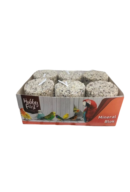 Tüm küçük kafes kuşları için, kum parçaları, ezilmiş grit kum ve toz halinde kırmızı kil içeren, 5 cm çapında, mineral bloktur.