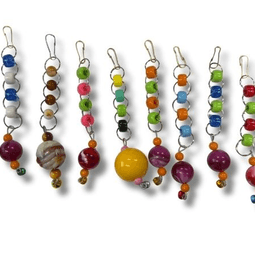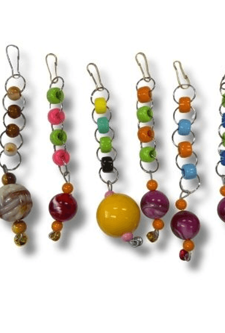 Muhabbet kuşlarının ilgisini çeken, renkli boncuk dizaynına sahip eğlenceli halka oyuncak seti! Her bir model farklı boncuk kombinasyonlarıyla kuşların dikkatini çeker, sallandıkça ses ve hareket sağlayarak oyun ve egzersiz ihtiyaçlarını destekler. Kancalı yapısıyla kafese kolayca takılır.