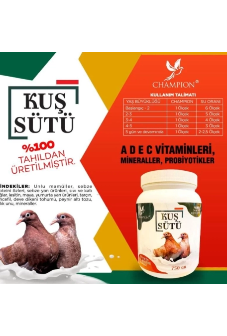 CHAMPION KUŞ SÜTÜ GÜVERCİN EL BESLEME MAMASI 750 GR