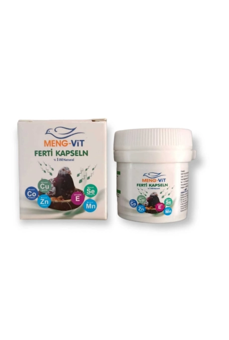 MENG-VİT Ferti Kapseln vitamin iz elementlerin dengeli bir karışımıdır.E vitamini ile zenginleştirilmiştir. Özellikle üreme sezonunda güvercinlerin boş yumurta çıkartması gibi istenmeyen durumları engellemek için verilir.MENG-VİT Ferti Kapseln üreme isteğini artırıcı etkiye sahiptir.