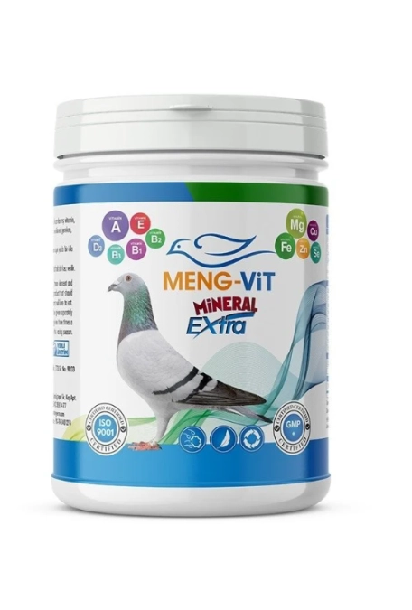MENG-VİT MİNERAL EXTRA vitaminler mineraller ve iz elementler karışımıdır. Yavruların gelişmesi hızlanır ve kemikleri güçlenir, dişiler daha sağlıklı ve sağlam şekilde yumurtlarlar. MENG-VİT MİNERAL EXTRA üreme ve tüy dönemlerin vazgeçilmez ürünüdür.Yavru ve sindirim sistemini destleyen bir toz mineral karışımıdır