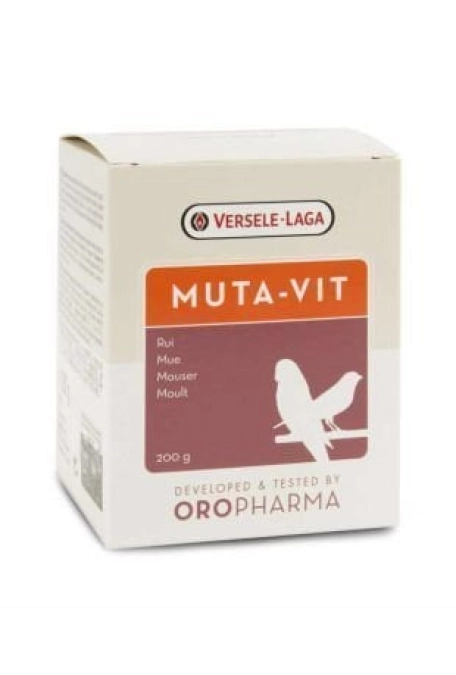 Muta-Vit (Süs kuşları için Tamamlayıcı Yem) Kuşlar için tamamlayıcı besindir. Oropharma Muta-Vit yüksek oranda sülfürik amino asit ve biyotin ile zenginleştirilmiş bir vitamin, amino asit ve iz element karışımıdır. Bu ürün özellikle tüylenme sezonu için üretilmiştir. Tüylerin sağlıklı ve parlak bir şekilde gelişmesine katkıda bulunurken karaciğeri korur. Tüyler ağırlıklı olarak katı protein dokudan (keratin) oluşur. Tüylenme sezonunda tüylerinin yapı taşı olan bu maddeye, yani metiyonin ve kisteine daha fazla ihtiyaç duyar. Kuşlar bu duruma bağlı olarak strese girebilir. Muta-Vit bu iki sülfürik amino asidin birleşiminden oluşur ve içeriğindeki esansiyel vitaminler ve biyotin ile kuşun güçlü ve sağlıklı olmasını, tüylerin parlak bir görünüm almasını sağlar.