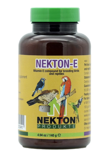 KULLANIMI; Üretime başlamadan 2 veya 4 hafta önce (kuşların genel kızgınlıklarına bağlı olarak) Nekton S (multivitamin) ile birlikte verilir. Burda da tavsiyem ilk hafta hergün S ile E yi beraber verilmesi, sonra gün asiri yapilabilir. Nekton E yumurtta sayısını ve doluluk oranını arttırdığından dişi kuşlara mutlaka verilmeli, dişi kuş kuluçkaya yattığı anda da Nekton E vermeye ara verilmelidir. Devam verililirse kizan hayvanlar tekrar ciftlesme dürtüsü ile yuvayi bozup yenisini yaparlar (Dişi kuşun aşırı kızışarak yaptığı yuvayı bozması engellenir) Nekton S devamli verilmesi önemlidir!Yavrular yuvadan ayrıldığında tekrar Nekton E kullanımına başlanılmalıdır.