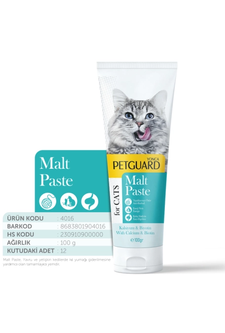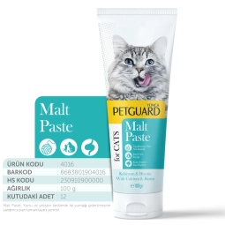 Petguard Kedi Köpek Malt Paste, 100 gramlık ambalajı ile evcil hayvan sahiplerine yüksek kaliteli bir ek besin sunmaktadır. Bu özel formül, kedilerin ve köpeklerin sindirim sistemini desteklemek amacıyla tasarlanmıştır. İçeriğindeki malt, tüy yutma sorunlarını azaltmaya yardımcı olurken, aynı zamanda tüylerin sağlıklı ve parlak görünmesini sağlar.
