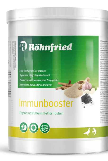 Bağışıklık güçlendirici, bağışıklık sisteminin dikkatini ve reaksiyon hızını ve dolayısıyla güvercinlerin canlılığını içten destekler. İlk defa, bağışıklık güçlendiricide güvercinlerin kolayca erişebildiği bakır ve çinko gibi fonksiyonel iz elementleri kullanıyoruz ve bu yeniliğin tarifini onaylı bir mikotoksin (mantar zehiri) bağlayıcı (aflatoksin B1) ile tamamlıyoruz. . Genç hayvan tozunda olduğu gibi, bağışıklık güçlendirici de güvercinleri stresli aşamalarda desteklemek için prebiyotik bileşenler, alliin, allisin öncüsü ve kolostrum içerir.