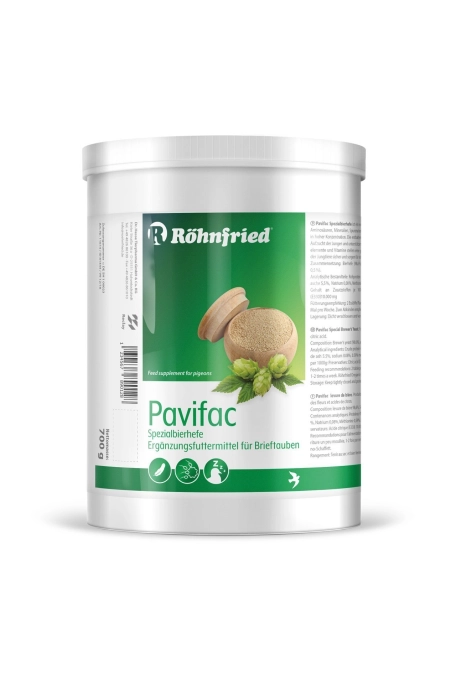 Röhnfried PavifacBira mayası , değerli ve doğal üründür. Bira mayası, yüksek konsantrasyonda B-kompleksinin vitaminlerinin yanı sıra amino asitler, mineraller ve eser elementler içerir. Kuşların en iyi şekilde yem yemeleri ve gelişmelerini destekler. Arı polenini ile desteklenen doğal ve saf bira mayasının kuşların doğal ve güçlü bir şekilde beslenmelerini sağlar.