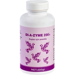 Diazyme 256 probiyotikler sayesinde bağışıklığı güçlendirir ve bağırsakları yararlı bakteri ve multienzimler sayesinde Ölümcül hastalıklara sebep olan (E.coli-Salmonella- Campylabacter) gibi enfeksiyon etkenlerinin üremesini durdurur. Mide-bağırsak florasını devamlı fizyolojik ahenk içinde tutar ve hastalık yapıcı bakterilerin üremesine engel olur.İshali önler, ıslak altlık problemlerine mani olur. Yemin protein ve enerji değerlerini arttırır. Yumurta ve döl veriminde belirgin artış sağlar.Hastalıklardan ve streslerden korur. Diazyme 256 kanarya ve Diazyme 256 sultan papağanı ve diğer tüm kafes kuşları için uygundur.